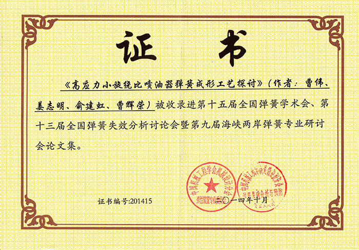 3、2014年10月公司员工撰写的两篇论文被收录进第十五届全国弹簧学术会论文集。