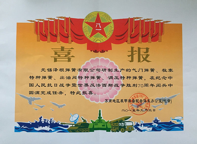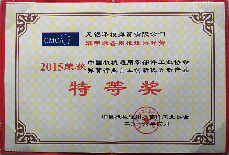 | 7、manufactured armored equipment thruster spring won the 2015 annual China General Machine Components Industry Association spring independent innovation products Grand Prize. |