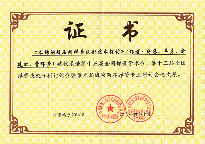 | 3、On October, 2014, two papers of our employees appeared in the 15th national spring technique article. |